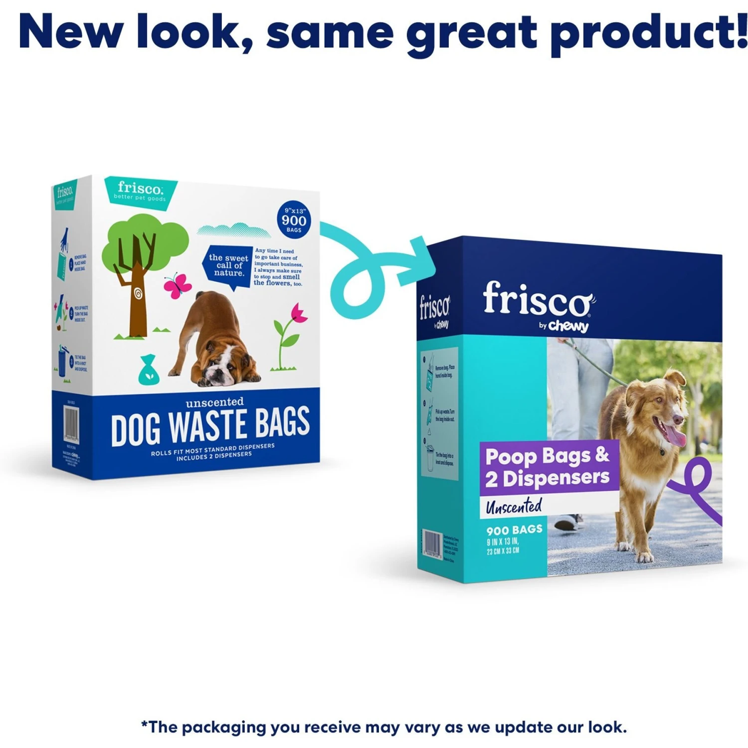 - From Frisco by Chewy. Refill poop bags are made of durable, leak-proof plastic with dimensions of 9×13 inches.