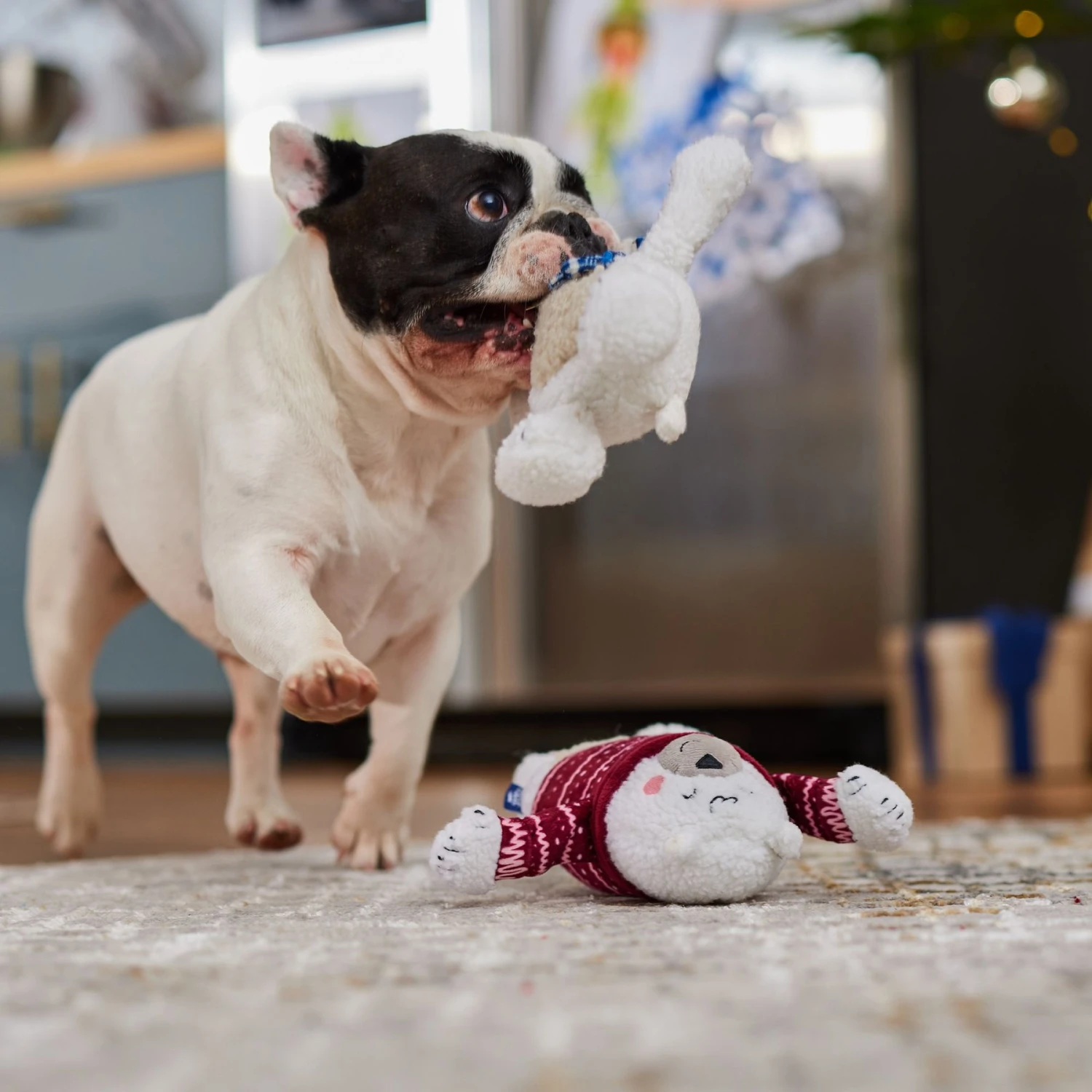 - Bring the cheer of the holiday season to your dog with these friendly plush polar bear toys. Every play session is about to level up, thanks to the squeaker that’s found inside.