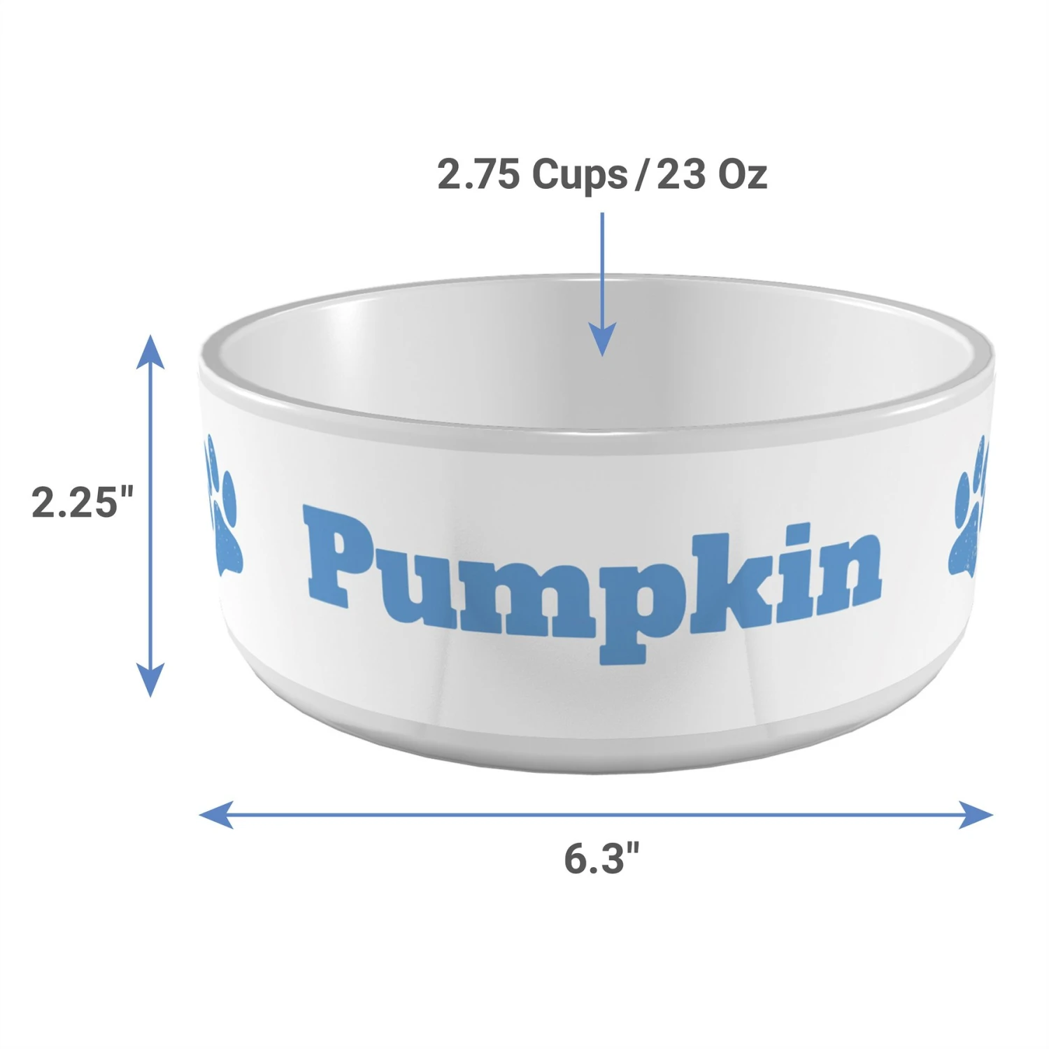 - Personalized pet bowl features paw print design and is double-glazed for a premium look and durability.