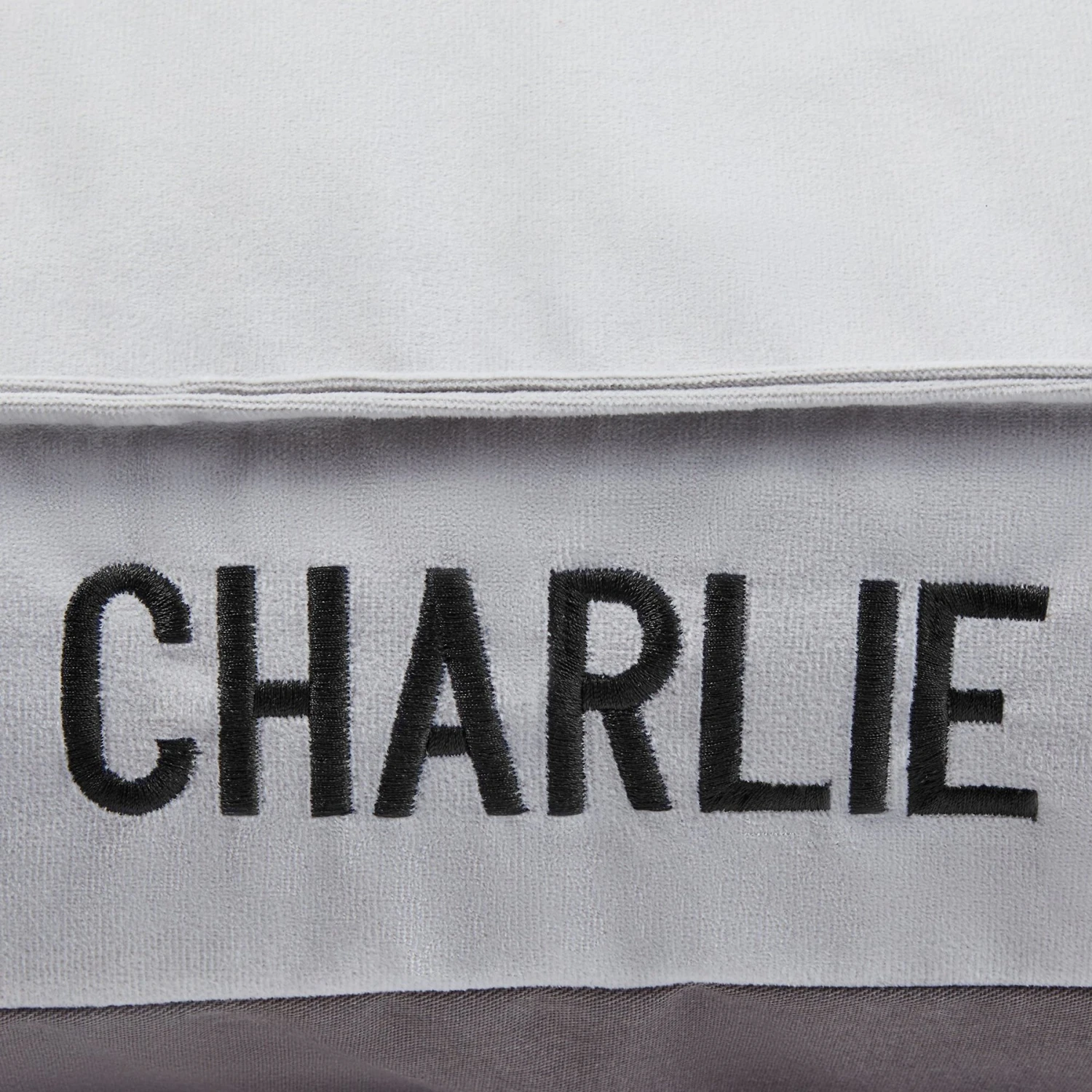 - Back bolster-style bed, customizable with up to 10 1-inch characters, perfect for their name.